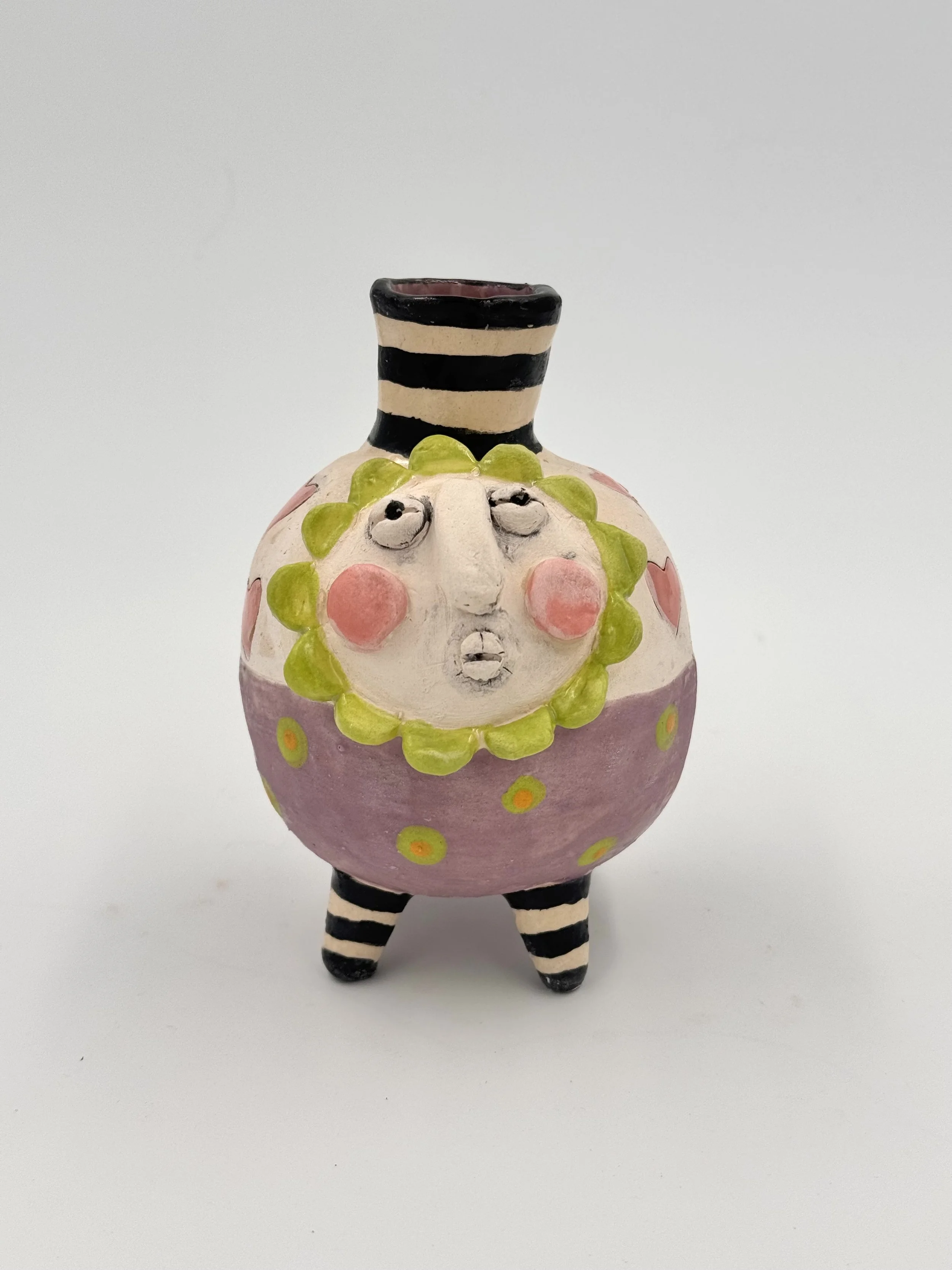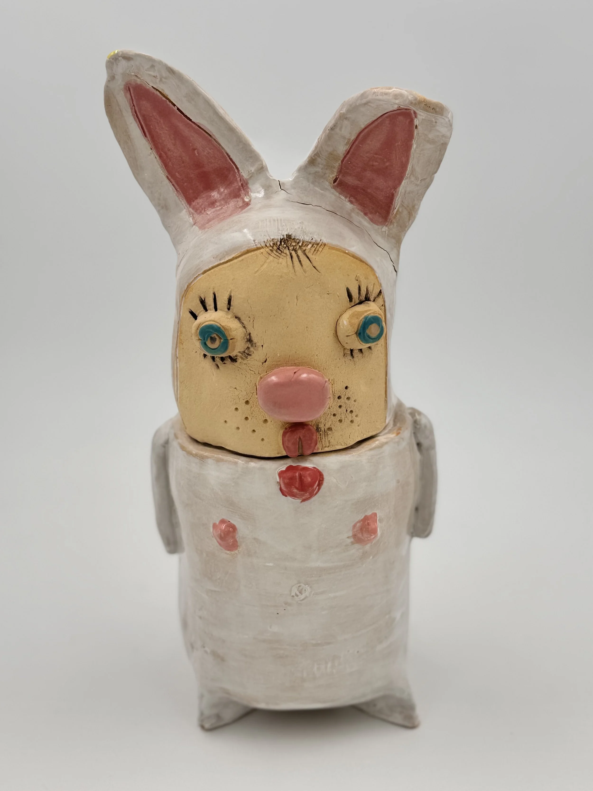 Her ceramics are a complete dichotomy of her photography: Whimsical, silly, fantastical and irreverent. At one time a very accomplished potter, she currently “sucks “at it for the daily ritual of throwing as one would practice the piano has not been maintained in her daily life. She produces work mainly constructing slabs and allowing the finished product to evolve on its own. She has no explanation for what just comes out of her head. She hopes her work will put a smile on peoples’ faces.